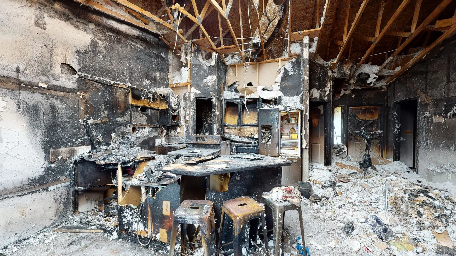 Few things are as devastating as a fire in your home or business. Whether large or small, fire results in severe damage and loss to property and possessions, affecting the living situations of home occupants and loss of income to businesses. In addition to the fire and smoke damage, your property may suffer water damage from firefighting efforts. We will help clear debris, remove odor from smoke and soot, repair structural damages, and project manage it with your insurance company the whole time so you can focus on your family!